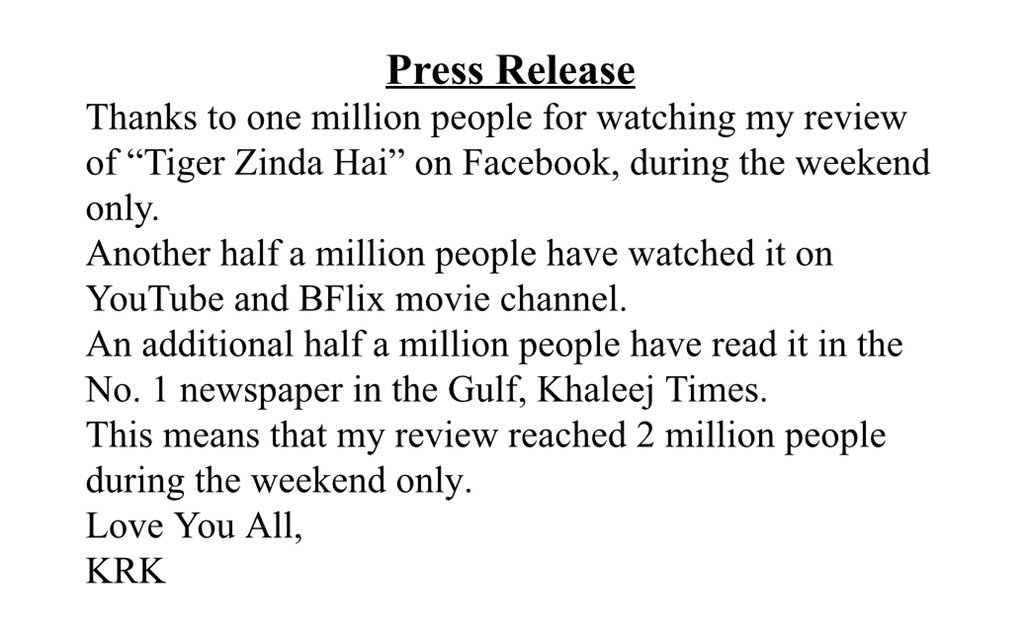 Krk Review Tiger Zinda Hai - Tiger zinda hai trailer beats hollywood's records!